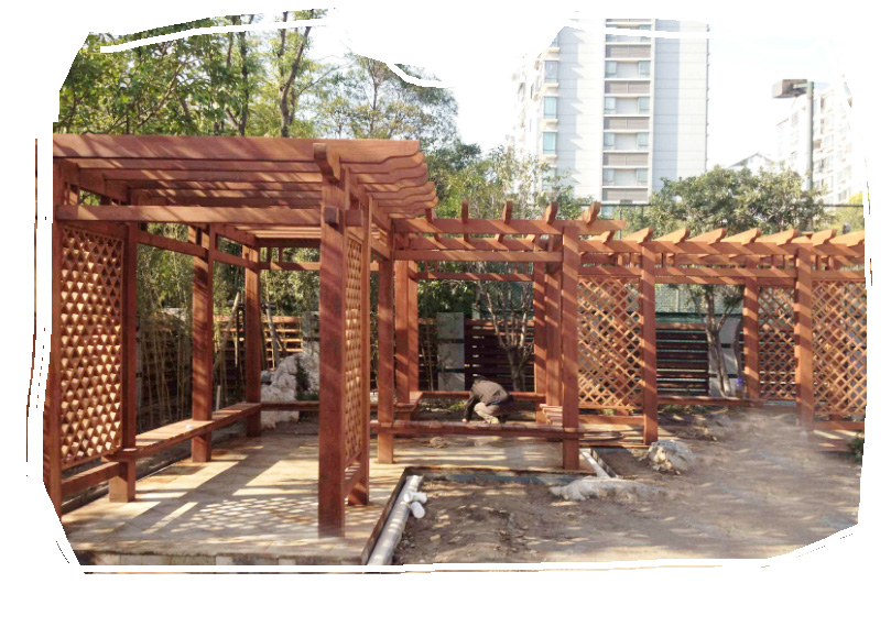 南京尚上防腐木采用先進的設備、防腐劑進行處理,使木材起到了防腐、脫脂、防霉、防蟻、防真菌作用,可以使木材壽命達30年以上,是戶外木結構的珍選。
